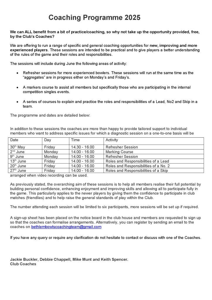 Bowls Club Procedures